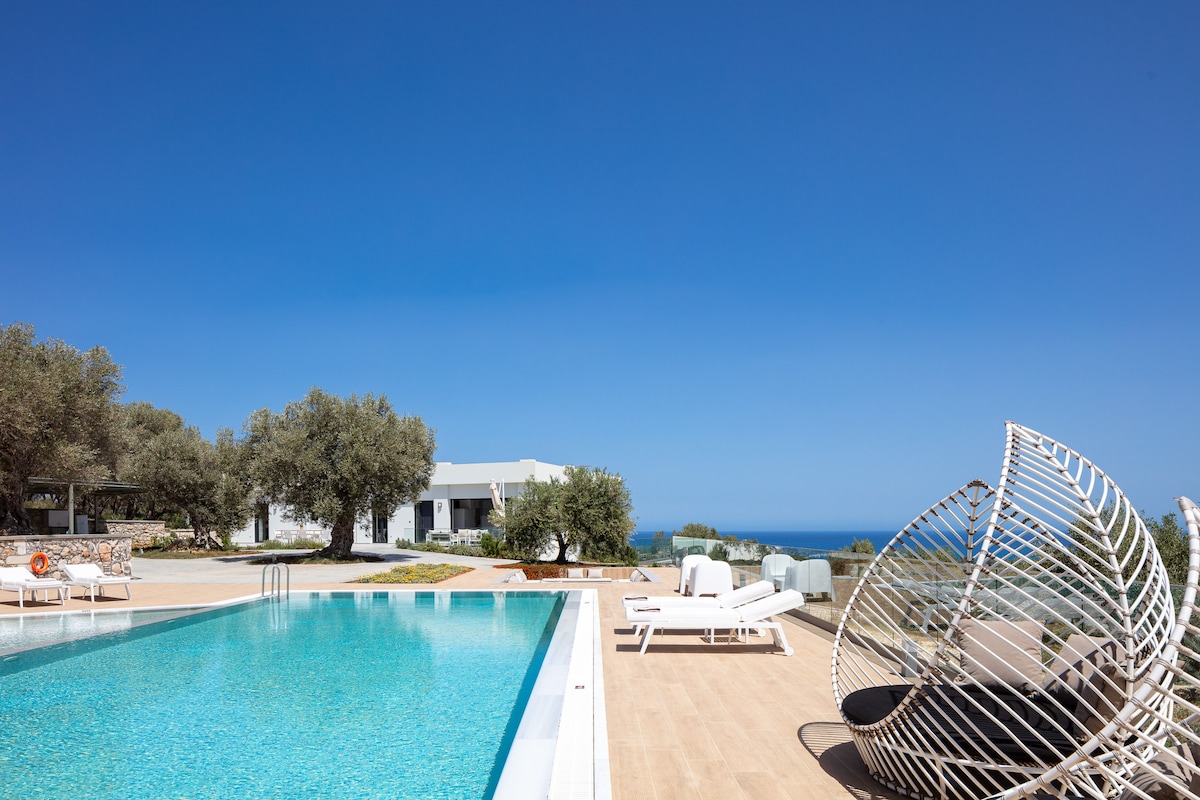 Nomadic Villa is approved by the Greek Tourism Organization & managed by "etouri vacation rental management". Set within a vast private olive grove, Nomadic Villa is perched above the town of Rethymno, offering sweeping views over the Cretan Sea and the olive-tree-dotted countryside below. This exquisite 300 sqm, single-level villa comfortably accommodates up to 10 guests across five en-suite bedrooms.
