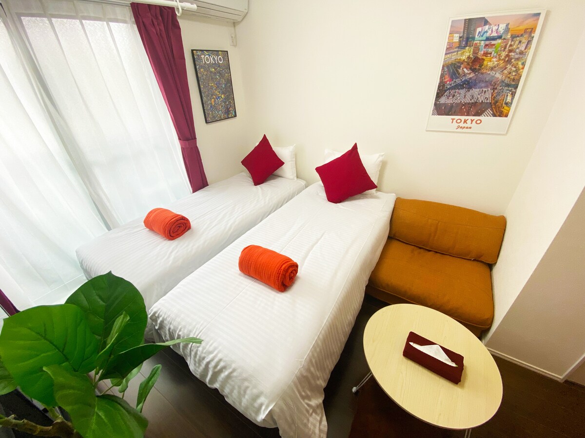 - Muse Yahiro - Þessi aðstaða er um 2 stoppistöðvar og 5 mínútur frá Skytree Oshiage stöðinni og í 5 mínútna göngufjarlægð frá næstu Yahiro-stöð. Það er mjög þægilegt að komast frá miðborg Tókýó, þar á meðal Ueno og Asakusa. * Engin bílastæði. * Það eru stigar.Engin lyfta. Hrein eign með hlýjum tónum. Við erum með eldhúsrými, húsgögn, tæki og eldunaráhöld. Hún rúmar allt að 10 manns og því biðjum við þig um að nota hana fyrir skoðunarferðir og aðra fjarvinnu og viðskiptaferðir. Vinsamlegast láttu okkur vita ef þú hefur einhverjar spurningar eða beiðnir. Ég hlakka til bókunarinnar þinnar.