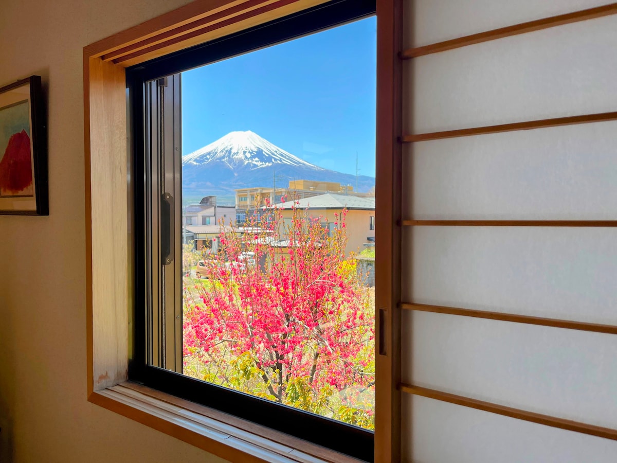 【Sjarmi Asahi】 🌸 Einkagisting með Mt. Fuji-útsýni – aðeins einn hópur í einu! 🌸 3 herbergi (2 japönsk, 1 vestræn) , Familly soom, svalir og salerni Hlýlegur gestgjafi og fjölskylduaðstoð 🌸 á staðnum fyrir japanska gistingu 🌸 Forkaups- og langtímaafsláttur 🌸 Yukata leiga (greidd) 🌸 Innifalið : Þráðlaust net, bílastæði (3 bílar), skutla, 10 hjól, hengirúm, grill 🌸 Frábær staðsetning: Fuji-Q 15 mín ganga, Chureito Pagoda 10 mín, Kawaguchiko 20 mín hjól, Lawson 1 mín