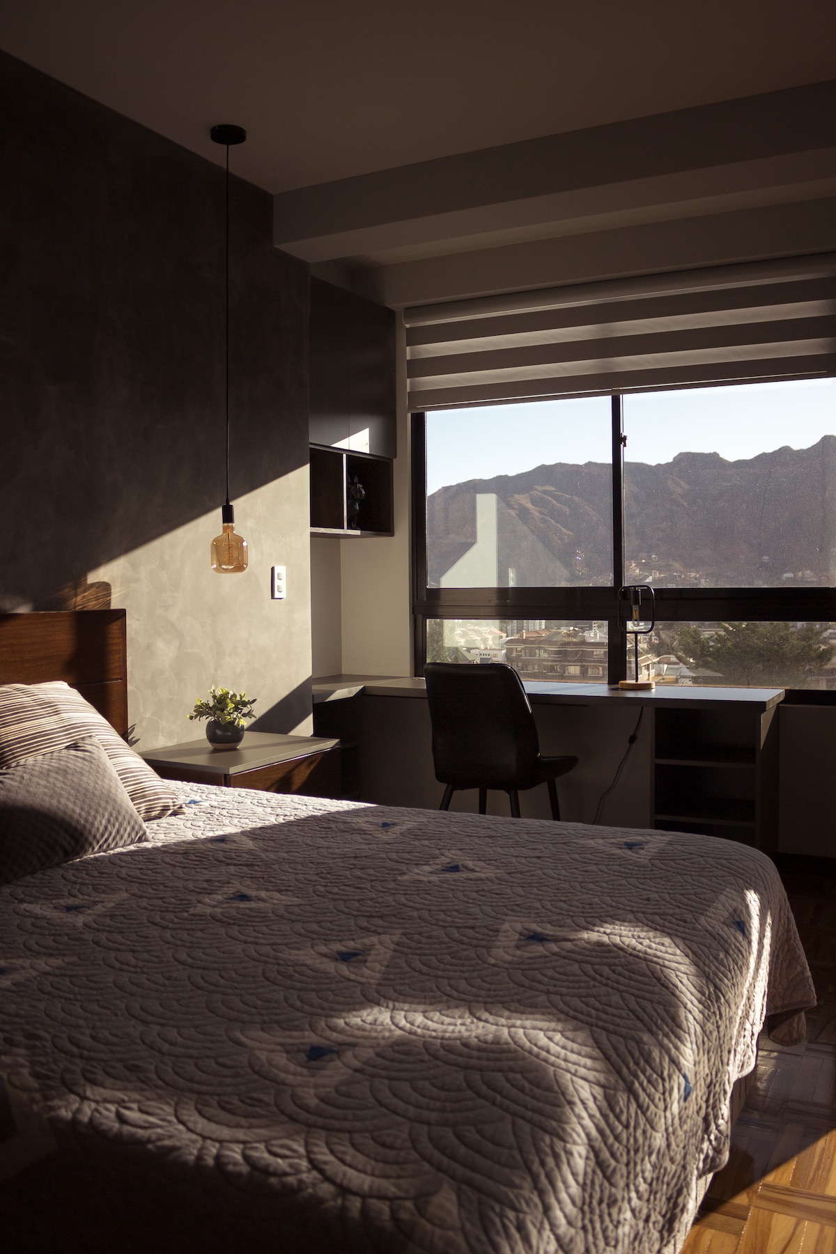 Uppgötvaðu nútímalega íbúð á háhæð (21) sem sameinar þægindi, stíl og magnað útsýni yfir La Paz og tignarleg fjöllin. Með hágæða áferð og frábærri staðsetningu upplifir þú borgina með því að láta þér líða eins og heima hjá þér og innblæstri einstaks umhverfis, dag sem nótt.