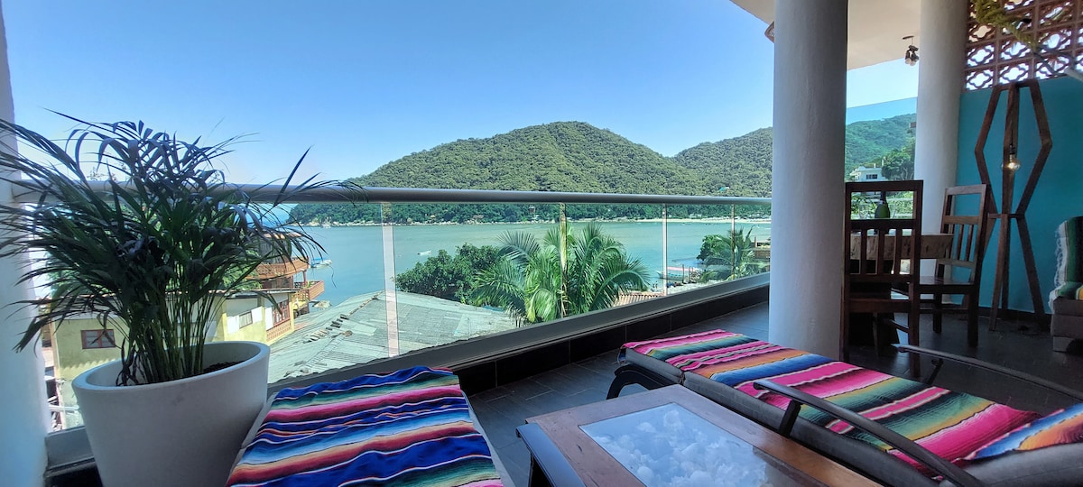 Beautiful 2 bedroom apartment with a stunning view of Banderas Bay. Surrounded by nature Casa Vista Magica is perfect for a relaxing vacation. Located just 2 min walk to the beach, 5 min walk to the city center and 10 min walk to the yelapa waterfalls. Come relax at Casa Vista Magica!
