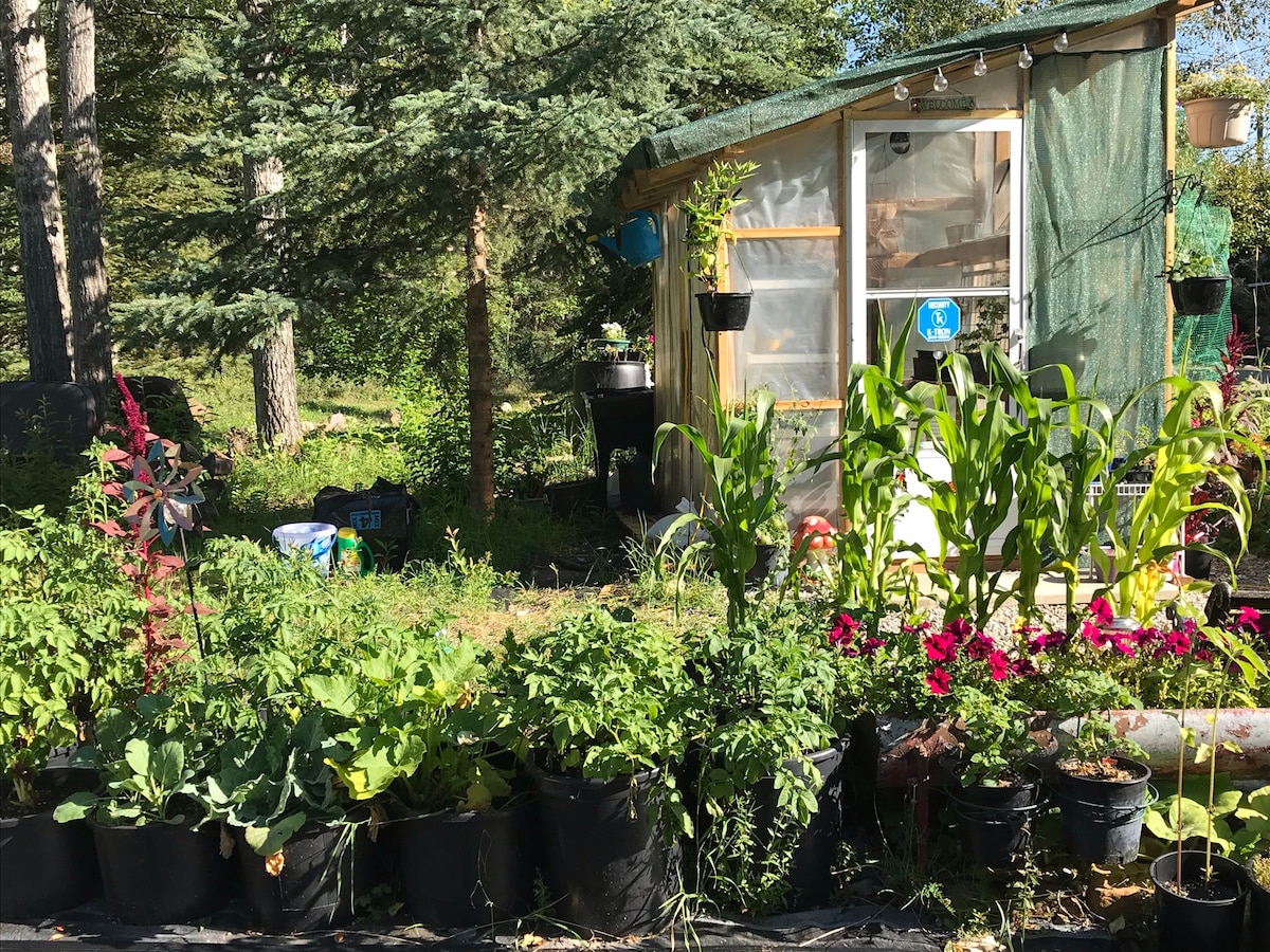 Welcome to our Chic Tiny Loft #2 which is attached to our home and constructed from a tiny house blueprint. The lofts have robes to lounge in, chocolates on the pillows and a basket full of breakfast/treats. Propane fire pit & camping BBQ for you to use too :) 18 hole Disc Golf Course and hiking trails just out our front yard. 45 minutes from Jasper (1 hour in the summer), 30 minutes from Miette Hot Springs and right beside the Beaver Boardwalk We just can't wait for you to be our guest!