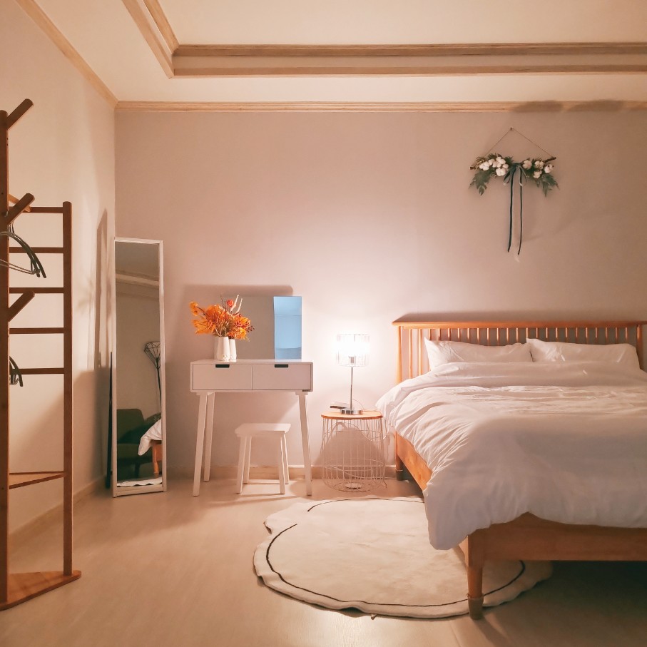 * Stay Mido er einkarými fyrir aðeins eitt teymi þar sem þú getur notað þakið og 30 pyeong einkahúsið. * Veittu hlýju heimilisins Sestu á þakveröndina og finndu útsýnið yfir Yudal-fjallið og kláfinn:) * Innritun kl. 15:00/útritun kl.11: 00 * Ekki er heimilt að innrita sig snemma og útrita sig seint án samráðs. Vinsamlegast fylgstu með innritunar- og útritunartímanum. * Notkun á sérherbergi: 1 svefnherbergi (2 queen-rúm) 2 svefnherbergi (1 queen-dýna), 2 baðherbergi, eldhús * Hefðbundið 4 manns, hámarksfjöldi 6 manns (þ.m.t. ungbörn) Viðbótargjald er 20.000 KRW á mann fyrir hverja nótt fyrir annað fólk en hefðbundinn fjölda fólks. * Ungbörn og smábörn verða fyrir viðbótarkostnaði frá og með 6 ára aldri. * Ef þú bætir við fleiri ungbörnum og smábörnum skaltu hafa samband við okkur áður en þú gengur frá bókun og við hjálpum þér að ganga frá bókun eftir staðfestingu. * Gæludýr eru ekki leyfð í notalegu umhverfi í herberginu og fyrir næsta gest til að nota herbergið. Vinsamlegast hafðu í huga að gestir bera ábyrgð á eldsvoða sem stafar af gáleysi meðan á dvöl þeirra stendur.