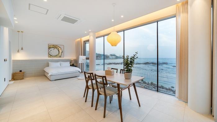 이 독특한 숙소는 개성 넘치는 스타일을 자랑합니다. 침실에서 일출과 일몰을 자쿠지(사용료무료)에서 일출과 일몰을 펜션에서 힐링되는 파도소리가 가능합니다 원룸형태 객실 총2명 입실가능 객실내 취사 가능 객실내 바베큐공가 없음