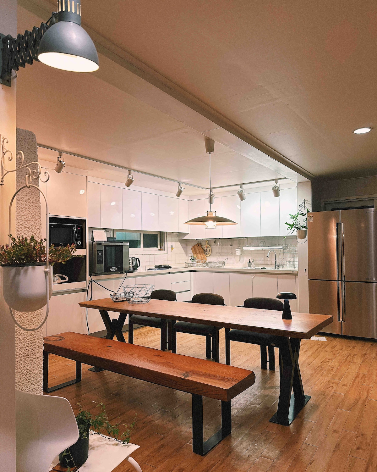 Þetta er rúmgóð gistiaðstaða🤍 sem hentar allri fjölskyldunni. (50 pyeong) _4 rúm < King 1, Queen 3, > _2 baðherbergi (1 hjónaherbergi, 1 fyrir framan stofuna) _Bílastæði í boði _Lyfta X (4. hæð) Ég lyfti þungum farmi _Loftræsting og rafmagn í hverju herbergi _Mokpo stöð: 4 mínútna gangur _4th floor of Hwang Park Sa Chungdigi Building in front of Korombangjae _10 mínútna göngufjarlægð frá Yudalsan Dulle-gil _Mokpo Modern History Museum 9 mínútna gangur _Mokpo-yeonan Ferry Terminal 5 mínútur í bíl _Mokpo Stadium í 15 mínútna akstursfjarlægð _Cesco sótthreinsun _Welcome tea provided (I 'll give you a glass of Ame at Cafe Soo on the second floor🖤) _Hárþvottalögur, hárnæring, líkamshlaup, tannkrem, sturtusvampur, salernispappír, handklæði o.s.frv. (tannbursti x) _Örbylgjuofn, kaffikorg, gasbrennari, vatnshreinsir, loftsteiking _Snjallsjónvarp eins og Netflix, YouTube o.s.frv. _Einkanotkun á þaki _Bluetooth-hátalari _Matreiðsla í boði (eldhús, þak) grillbúnaður x, rafmagnsgrill O, grill _Settu upp hitara í stofunni _Innritun kl. 15:00/útritun kl. 11:00 _Ef fleiri en 6 manns bætast við 20.000. _Þú getur geymt farangurinn þinn fyrirfram _Gestgjafinn er mjög vakandi fyrir hreinlæti.