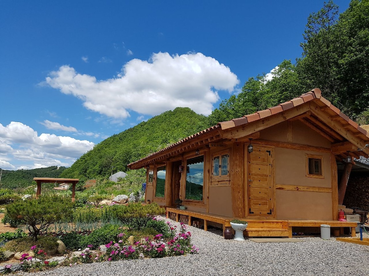 자연 재료인 국내산 소나무, 잣나무, 편백나무와 국내산 황토로 만든 흙집이므로 각 채마다 구들을 놓아 나무 장작으로 군불을 떼며, 방안에서 커다란 창으로 별이 보이는, 밤하늘 뷰가 멋진 한국 전통 흙집입니다. 바쁜 일상 속에 단 하루만이라도 모든 걸 내려놓고 나 자신을 만나고 싶다면, 그래서 진정한 쉼을 누리고 싶다면, 자연을 품에 안은 황토흙집에서 마음의 고향을 얻어 가는 여행을 해보세요^^ 행복하세요^^ ★풀잎소리방은 성인2명+ 아이1명, 적당합니다. 성인3인이상은 물소리방 이상이 적당합니다. ★에어비앤비 표기상 어스하우스이며 침대대신 온돌과 이불을 제공합니다. ★계절에 따라 텃밭이용, 채소를 무료로 드리며 바베큐도 할 수 있습니다.
