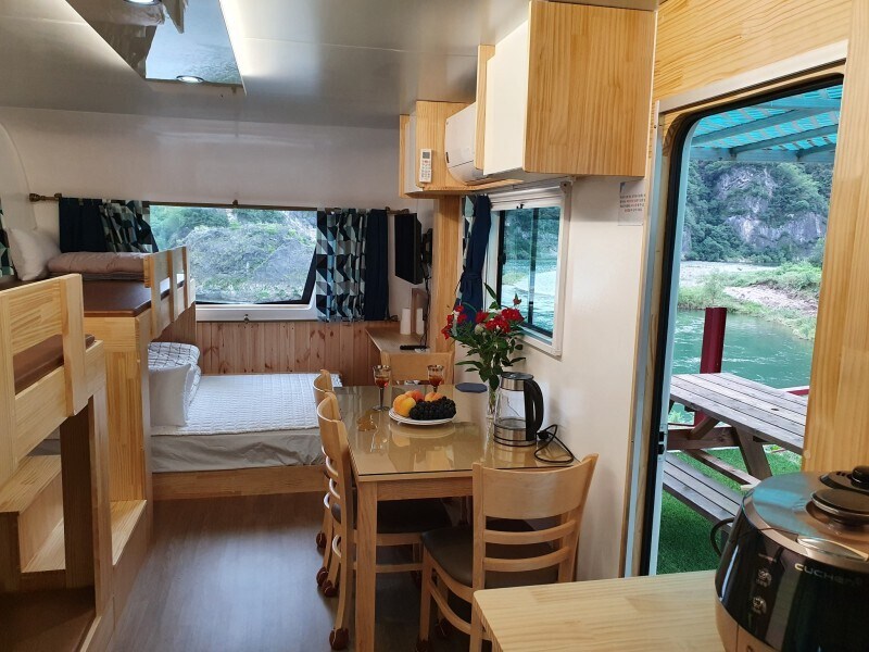 Halló! Þetta er Camp April, þar sem tíminn stoppar. Camp April samanstendur af einstökum gistirýmum þar sem þú getur upplifað allt annað andrúmsloft, svo sem Airstream búðir skreyttar í amerískum vintage stíl/þakbúðum með fallegu útieldhúsi með Volkswagen örrútu sem svefnherbergi/kajakbúðum þar sem þú getur notið kajak hvenær sem er vestan megin við búðirnar/tveggja hæða einkaverönd með frábæru útsýni yfir Sogang-ána o.s.frv. Það er engar herbúðir sem aðeins er hægt að byggja á að minnsta kosti 20 ára aldri og það er þægilegra umhverfi fyrir pör, pör, pör og sóló sem vilja slaka á í burtu frá óæskilegum hávaða og truflunum og náttúran og Eclectic markið sem mynda búðirnar mun veita ríka skynsemi og frelsi meðan á dvöl þinni stendur. Ef eignin þín er bókuð núna smellir þú á aðrar skráningar gestgjafans til að sjá lausar skráningar. Komdu í Camp April og upplifðu það fyrir þig hvers vegna fólk sem hefur verið hér neyðist til að koma aftur♡♡♡!
