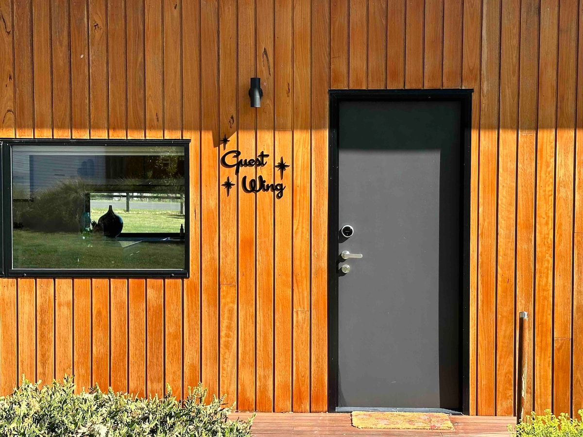 Lúxus, bjart gestahús með stórum timburgluggum á 30 hektara grasagörðum og blómplantekru fyrir áhugamál. Með heillandi stöðuvatni, fernum, regnskógi, hestum, villtu dýralífi og fjölbreyttu fuglalífi. Athvarfið okkar er aðeins 1 klst. og 15 mínútna fjarlægð frá Sydney. Gestahúsið okkar er hannað eins og skandinavískt sveitasetur með lúxus nútímalegu eldhúsi og baðherbergi. Eignin er stór stúdíóíbúð. * Eldiviður fylgir ekki með.