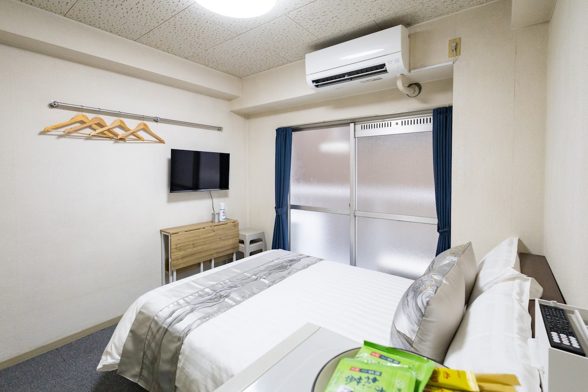Þetta er frábær staðsetning í hjarta Hiroshima, í aðeins 7 mínútna göngufjarlægð frá Peace Park. Það er tilvalinn staður til að slaka á eftir dagsferð í Hiroshima. Inngangurinn er með sjálfvirkri læsingu til öryggis. 2ja ・herbergja íbúð Svefnherbergi 2 -2 hjónarúm ・Einn svefnsófi í tvöfaldri stærð ・eldhús ・salerni ・baðherbergi * Til viðbótar rúmföt fyrir svefnsófa eru í boði. *Vinsamlegast notaðu aukarúmfötin á eigin spýtur. Allt að 6 manns í heildina geta gist í herberginu.