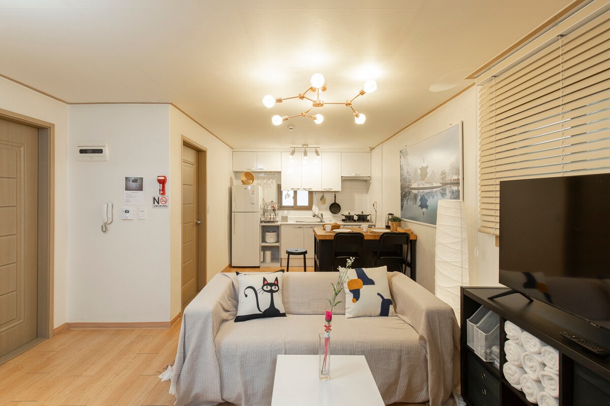Hongdae 2BR/2BED Spacious Apt. 지하철역에서 걸어서 7분 거리.