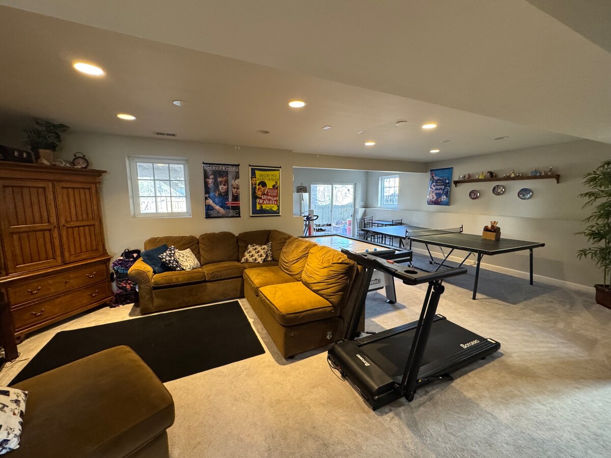 Rúmgóður einkakjallari í nokkurra mínútna fjarlægð frá Jiffy Lube Live, 30 km frá D.C. og klukkutíma fjarlægð frá Shenandoah. Njóttu kvikmyndahúsa og frábærra veitingastaða í nágrenninu. Í kjallaranum er sérinngangur, notalegt rúm, sófar, sérbaðherbergi, eldhúskrókur með örbylgjuofni og ísskáp (enginn eldhúsvaskur, eldavél eða ofn) ásamt leik-/æfingasvæði. Þetta rými býður upp á þægindi og þægindi fyrir afslappaða dvöl hvort sem þú slappar af eftir tónleika, horfir á sjónvarpið, spilar leiki eða æfir.