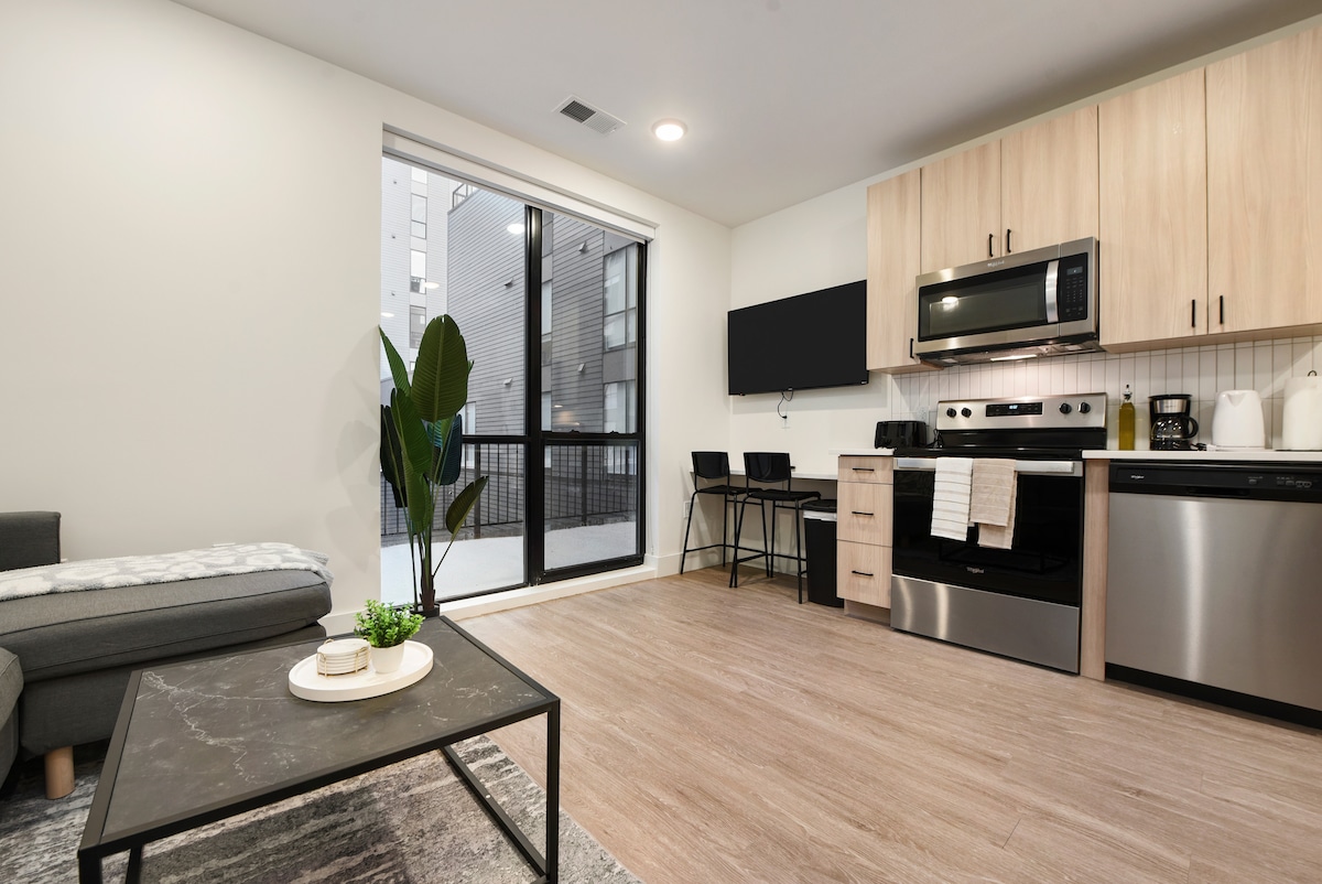 2BR Downtown Apartment með líkamsræktarstöð og þilfari