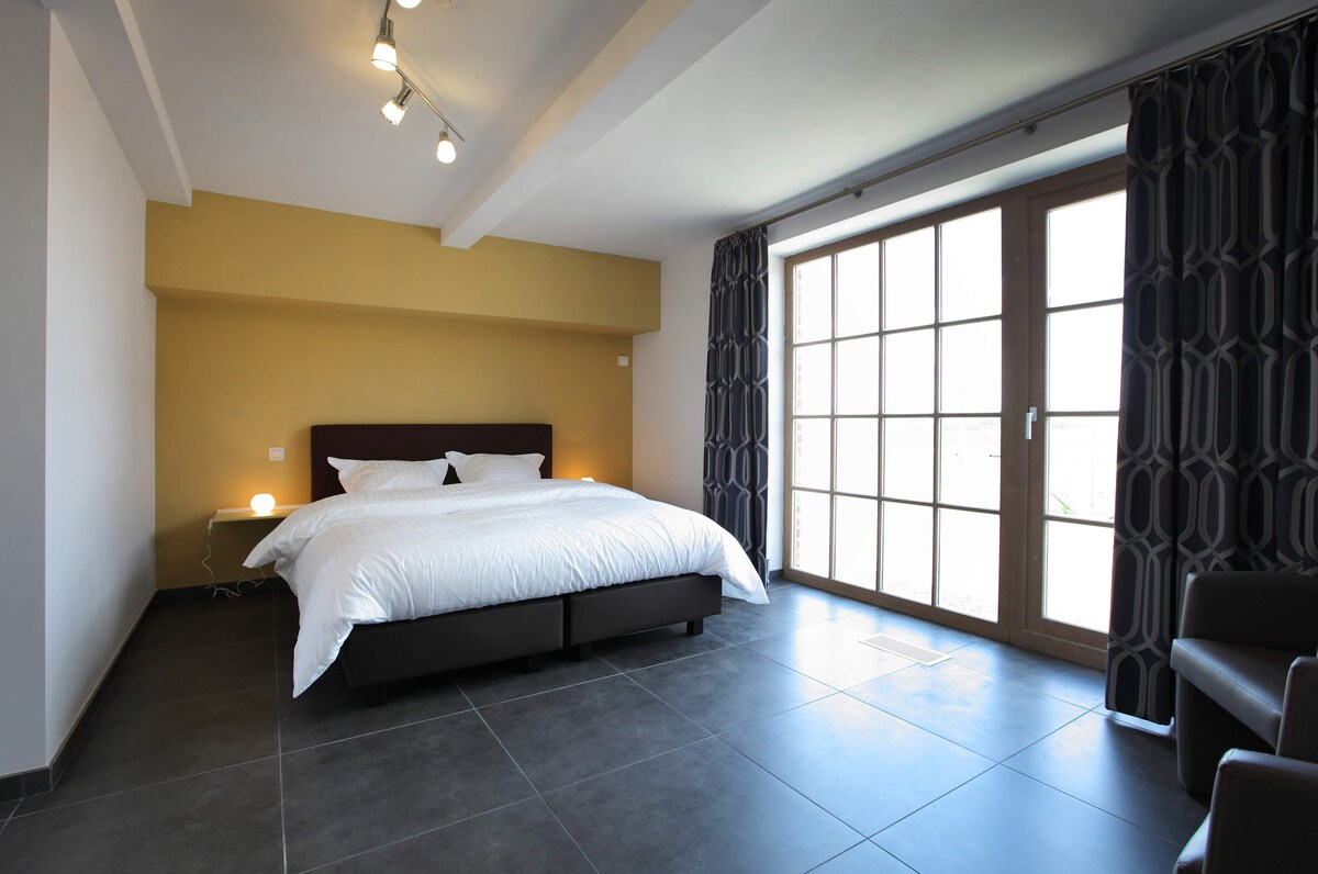 Als je bij ons logeert, kom je terecht in de bovenste verdieping van een oude burgemeesterwoning met een grote stadstuin (ook trampoline en speelhuisje) tot jullie beschikking. Op het gelijkvloers heb je ons restaurant. In het appartement beschik je over 2 badkamers, een grote open keuken, eethoek die uitkijkt op de tuin. De 3 slaapkamers bieden ruimte voor 8 mensen. We liggen in het historisch hartje van Ieper, op 5 min stappen van de markt en ook van het bus-en treinstation.