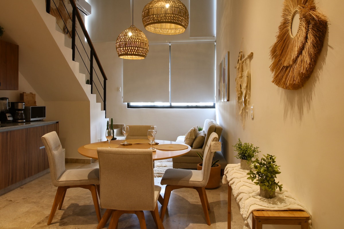 Disfruta Mérida desde este depto de diseño cálido y elegante, ideal para 3 personas. Cuenta con 1 cama Queen y sofá cama, espacios amplios a doble altura, sala acogedora, comedor con luz natural y cocina equipada. Un lugar tranquilo y con estilo para descansar, trabajar o explorar la ciudad sintiéndote como en casa.