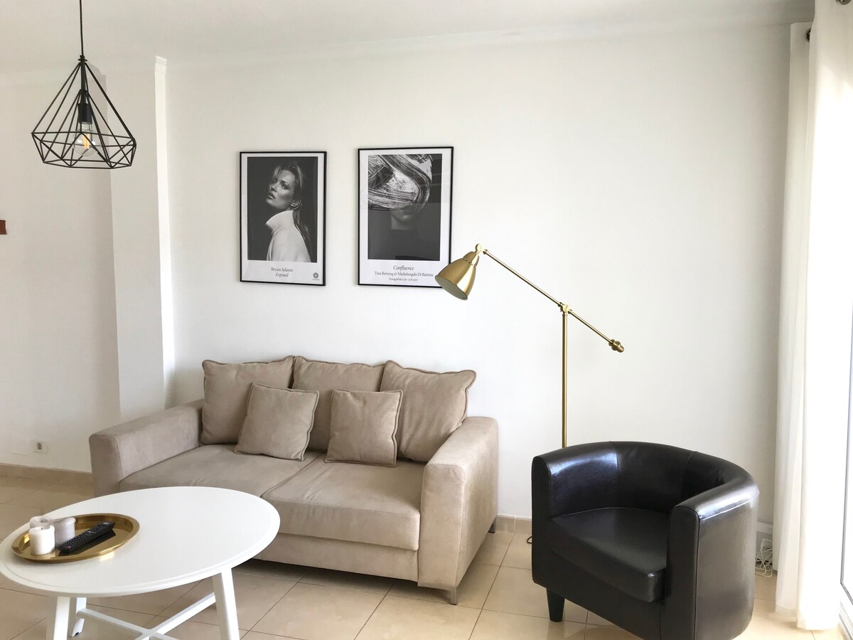 Nýuppgerð íbúð með 1 svefnherbergi. Miðsvæðis við aðalveginn á milli strandarinnar (300m) og verslunar- og afþreyingarmiðstöðvarinnar Yumbo (400m). Staðsett í litlu samstæðu (endurnýjuð 2022) með sundlaug. Vegna staðsetningarinnar, ótakmarkaðs internets (ljósleiðari), þvottavélar og sjónvarps (þ.m.t. Chromecast og sjónvarp) og vel búið eldhús (ofn, uppþvottavél, frystir o.s.frv.) hentar bæði fyrir stutta og lengri dvöl.