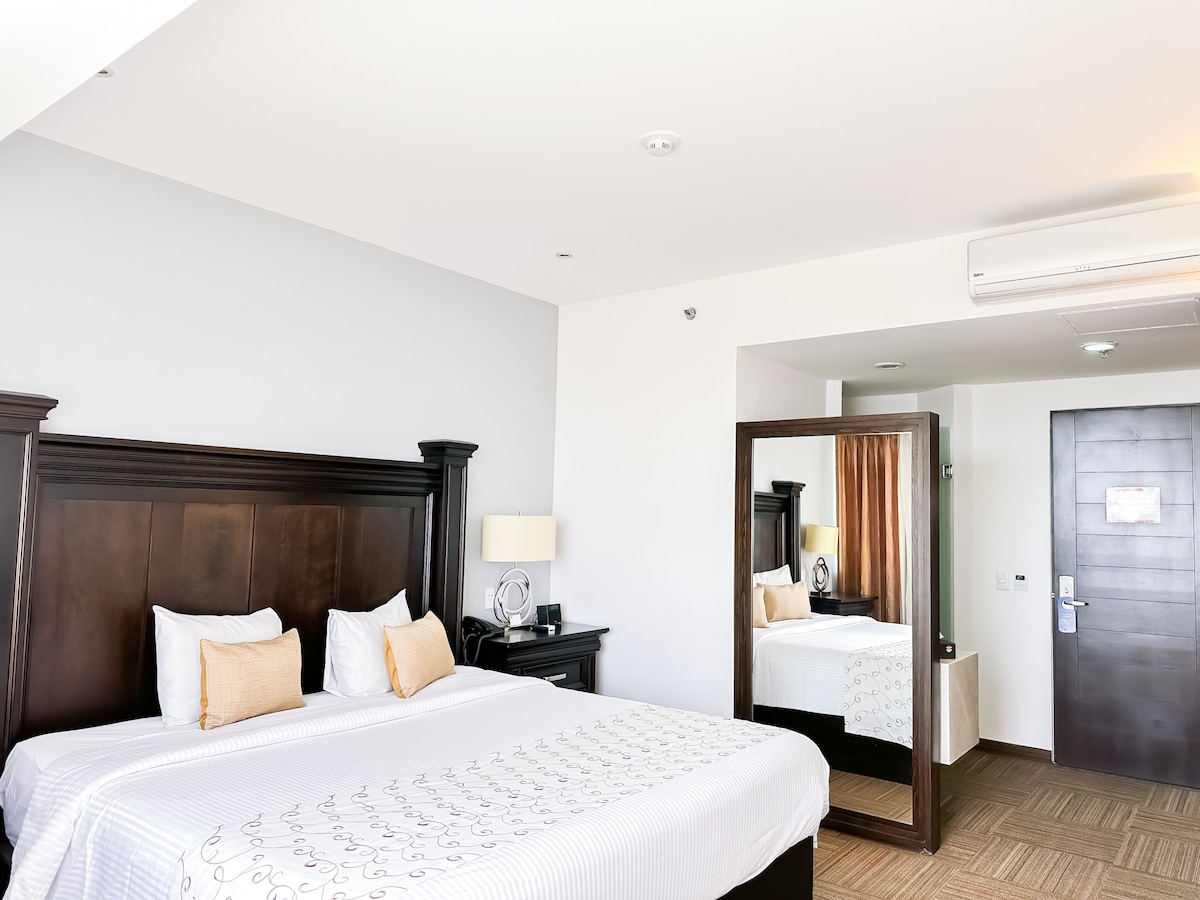 In the beautiful area of La Valenciana, you’ll find our deluxe suite with a king-size bed, a talavera-tiled bathroom with a bathtub, and an incredible private terrace with a jacuzzi. It offers a peaceful space and an impressive view of the Guanajuato Valley. Anything else? Yes—there’s also a garage, so you can comfortably park your car in a secure space.