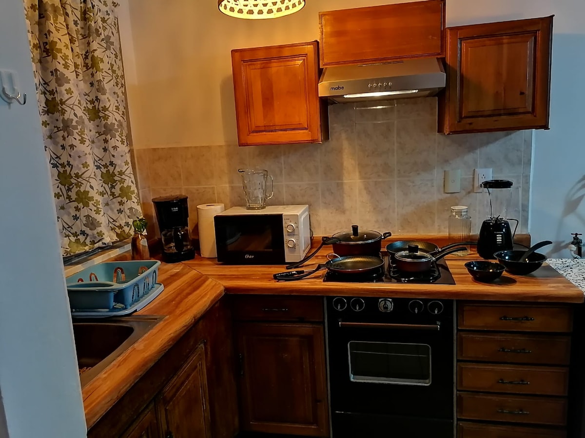 Depa de Donna Þetta er íbúð með bílskúr fyrir bíl, eldhús og borðstofu á fyrstu hæð. Á annarri hæð er : Main Recamara með Queen-rúmi, snjallsjónvarpi, kapalsjónvarpi, skáp og minisplit (kulda og hita). Annað svefnherbergi með hjónarúmi, skáp og minisplit ( kalt og hiti) og stofa með snjallsjónvarpi og hljóðbúnaði og fullbúnu baðherbergi sem aðeins er hægt að nota í íbúðinni!