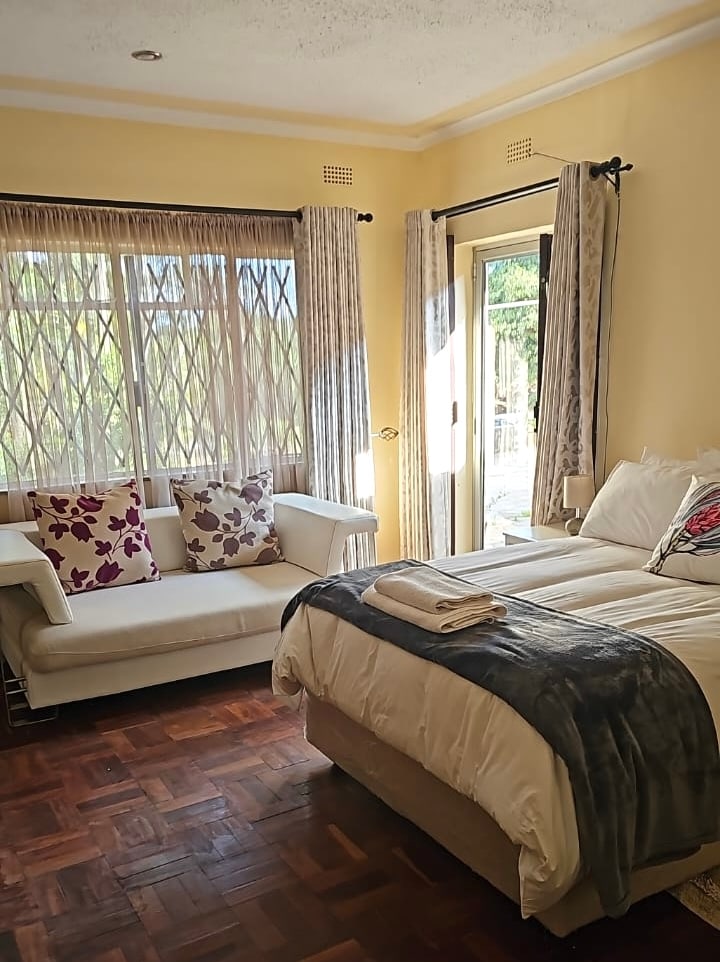 Rúmgóð, notaleg, glæsileg og náttúrulega vel upplýst rúmteppi með eigin baðherbergi, fullbúnu eldhúsi og eigin inngangi. Það er á fyrstu hæð gestavæng í fjölskylduhúsi í Highlands, friðsælu laufskrúðugu úthverfi í Harare. Doehan Bedsitter er tilvalið heimili að heiman til að hörfa frá borgarstarfsemi, búa til heimalagaðar máltíðir, horfa á ókeypis Netflix eða jafnvel fara heimaskrifstofu með besta þráðlausa netið í Simbabve.