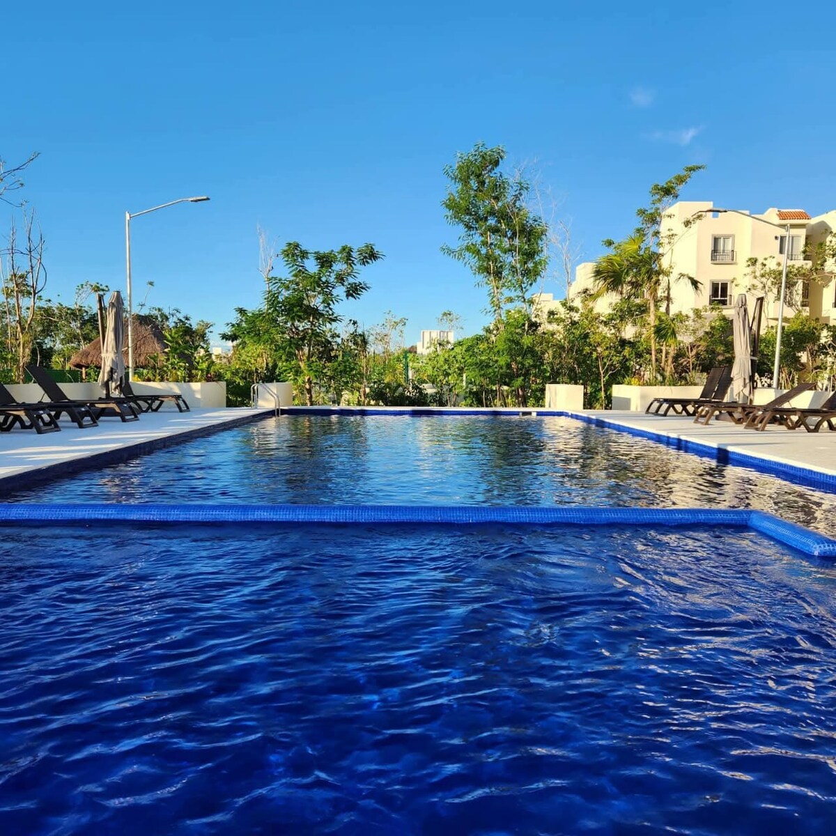 Lúxusíbúð í Aldea Zama. 7 mín akstur á ströndina, 5 mín akstur til Tulum Centro, göngufjarlægð frá veitingastöðum og verslunum í Aldea Zama. Staðbundin og vönduð húsgögn skapa hreint og listrænt umhverfi. Einkasundlaug og bílastæði neðanjarðar. Tvö ókeypis hjól. Þitt eigið leikhús lækkar úr loftinu með því að smella á hnapp. Fullbúið eldhús, sjónvörp, leikir. Þú þarft ekki einu sinni að fara.