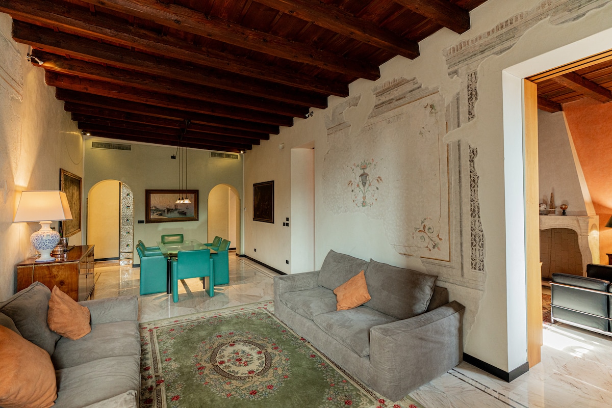 Nú er kominn tími til að njóta ógleymanlegrar upplifunar í þessari heillandi júgendastílsvillu frá árinu 1927 sem er staðsett nálægt miðaldaveggjunum. Þakíbúðin er staðsett í stuttri göngufjarlægð frá Pietra-brúnni (400 metrar), rómverska leikhúsinu, dómkirkjunni, bókasafninu Capitular og kirkjum San Stefano og San Giorgio. Þú munt njóta stórkostlegs útsýnis yfir Castel Sant’Angelo. Íbúðin er fullkomin fyrir þá sem vilja njóta borgarinnar í afslappandi umhverfi en samt vera nálægt sögulega miðborginni. @veronaluxuryapartment