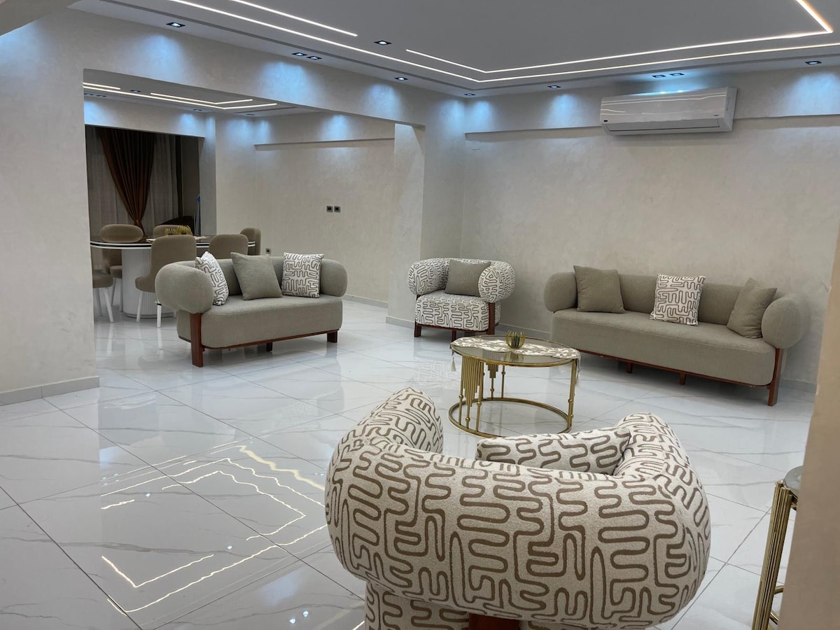 Þetta er fullbúin og stílhrein eign með þremur stórum svefnherbergjum, stórri stofu og nútímalegu opnu eldhúsi. Eignin er fullbúin með nútímalegum tækjum og nútímalegum húsgögnum. Það er miðsvæðis, í aðeins 20 mínútna akstursfjarlægð frá Kaíró-flugvelli og í 15 mínútna göngufjarlægð frá sögulega svæðinu Al-Korba. Það er í 900 metra fjarlægð frá neðanjarðarlestarstöðinni og er með útsýni yfir Gesr Al-Suez-stræti sem gerir hana aðgengilega með alls konar almenningssamgöngum. Það er hinum megin við götuna frá Mansheyt Al-Bakry Public Hospital.