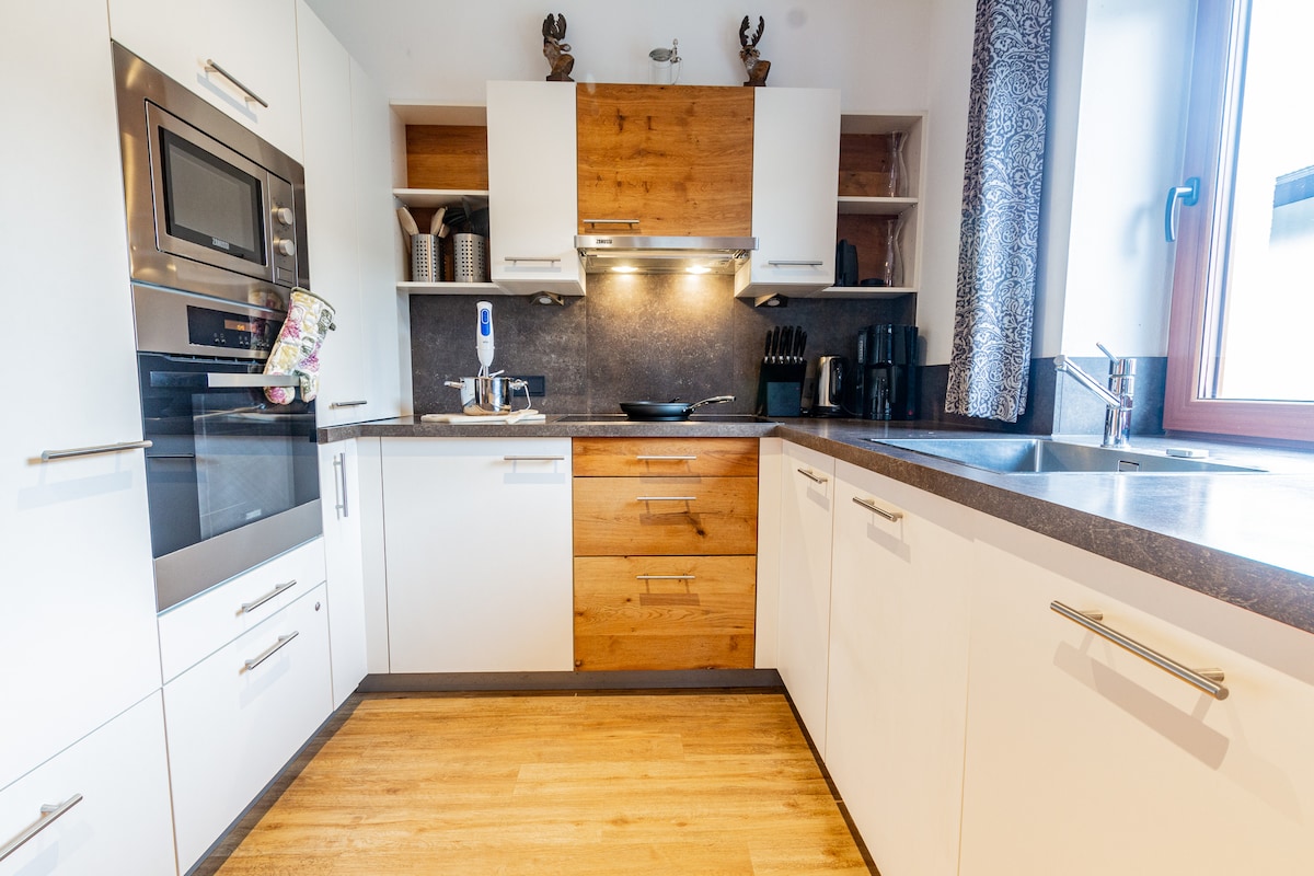 Chalet Charlotte - nýbyggt orlofsheimili okkar (hálf-aðskilið hús) í alpastíl - hefur verið innréttað í nútímalegum og mjög notalegum stíl með mikilli athygli að smáatriðum. Það býður upp á nóg pláss fyrir hlýju. Njóttu með vinum. Fjölskylda. Hrein náttúra. Fjallaheimar. Skálinn með eigin gufubaði er á jaðri Lengdorf (Niedernsill), lítið, idyllic þorp milli Zell am See, Kaprun og Kitzbühel.