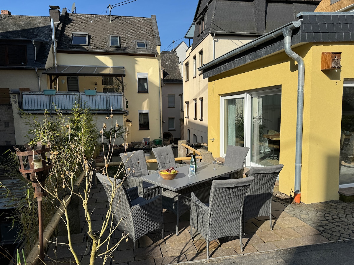 Íbúðin okkar, sem er 50 m2, búin notalegum, nútímalegum stíl, með aðskildum inngangi og sólarverönd býður þér upp á fjölskylduvænt frí. Við erum miðsvæðis í Zell-Barl-hverfinu í hjarta bæjarins Zell. Þú ert fljót/ur á vínekrunum, í Mosel, við ýmsa verslunarmöguleika og landslagið í Mosel er rétt fyrir utan dyrnar. Íbúðin er fullbúin. Við erum fjölskylduvænt hús. Við hlökkum til að taka á móti þér! Viktor og Lilie