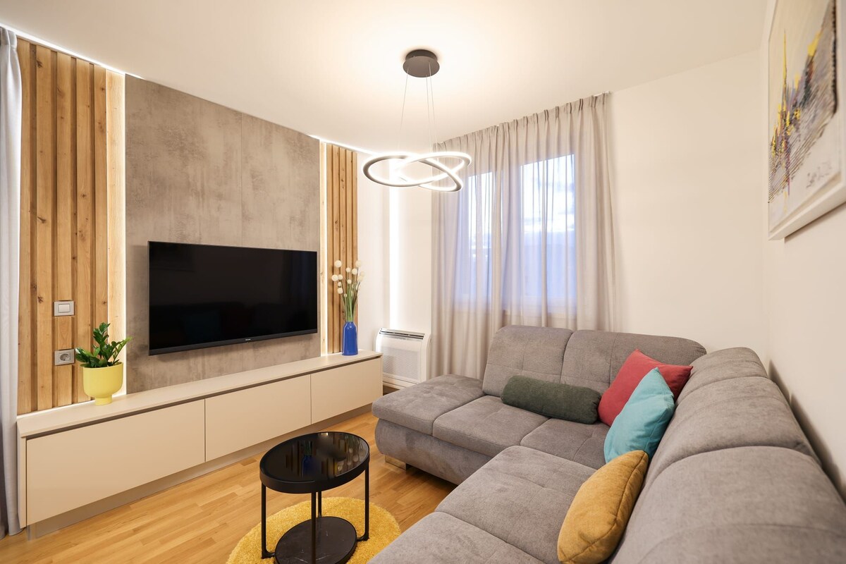 Nýbygging (2020), með sérinngangi, einkabílastæði fyrir tvo bíla. Miðborgin, 50m frá smábátahöfn og sjó, 5 mínútna göngufjarlægð frá Kolovare ströndinni, 7 mínútna göngufjarlægð frá gamla bænum. Hönnuður skreytt, með ljósleiðara stjörnuhimni, innri LED lýsingu og ljós andrúmsloft kerfi. Öll herbergin eru með sjálfvirkri loftkælingu.