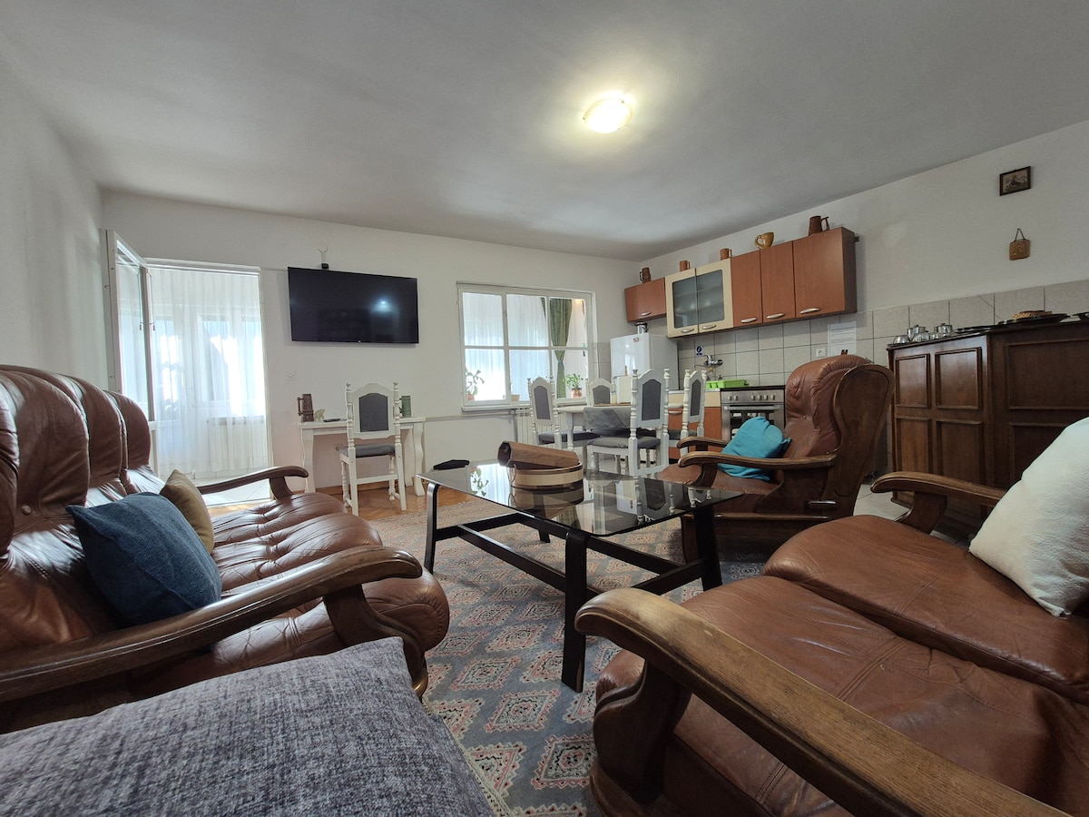 Verið velkomin í fullbúið hús okkar í aðeins 40 km fjarlægð frá Sarajevo. Eignin okkar er staðsett á svæði þar sem aðeins helgarheimili eru byggð og býður upp á kyrrlátt og friðsælt umhverfi fyrir fríið þitt. Úti er einka bakgarður með plássi til að slaka á og njóta. Þar er grillaðstaða með sætum fyrir sex sem hentar vel til að bjóða upp á grillveislur með fjölskyldu og vinum. Fyrir náttúruáhugafólk er beinn aðgangur að skóginum fyrir aftan eignina endalausa möguleika á skoðunarferðum og ævintýrum.