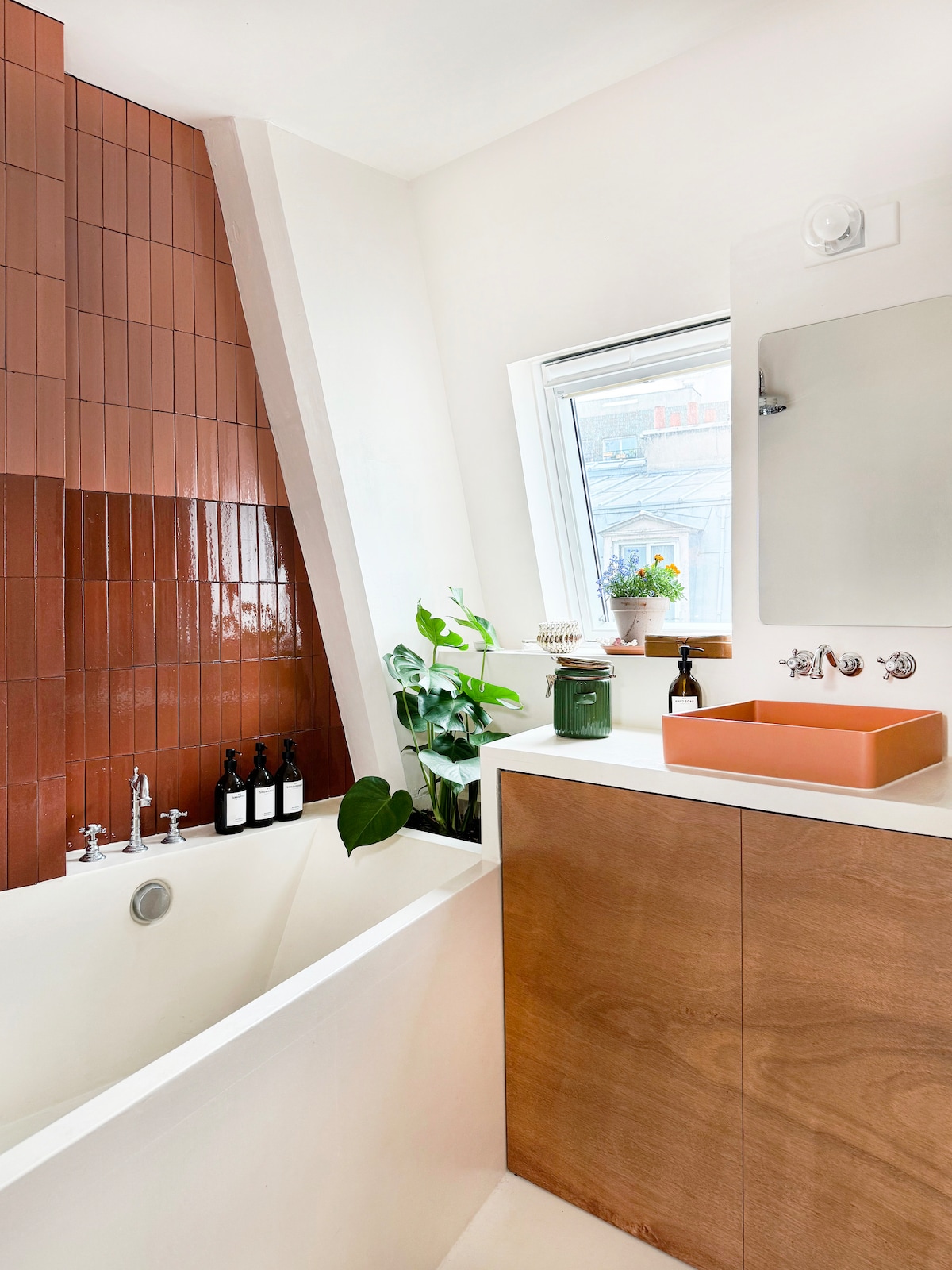 Íbúð sem er 120 m2 að stærð með hrottafengnum stíl á 7. og efstu hæð í nútímalegri byggingu, eins og húsi, nýtur hún góðs af 150m2 verönd með útsýni yfir þak Parísar. Íbúðin okkar er staðsett við neðanjarðarlestina Volontaires Paris 15ème 4 neðanjarðarlestarstöðvarnar frá Le Bon Marché og 5 frá Eiffelturninum og er griðarstaður friðar við rólega götu nálægt öllum verslunum. Þú kemst beint í íbúðina með lyftunni sem fer með þig upp á efstu hæð byggingarinnar.