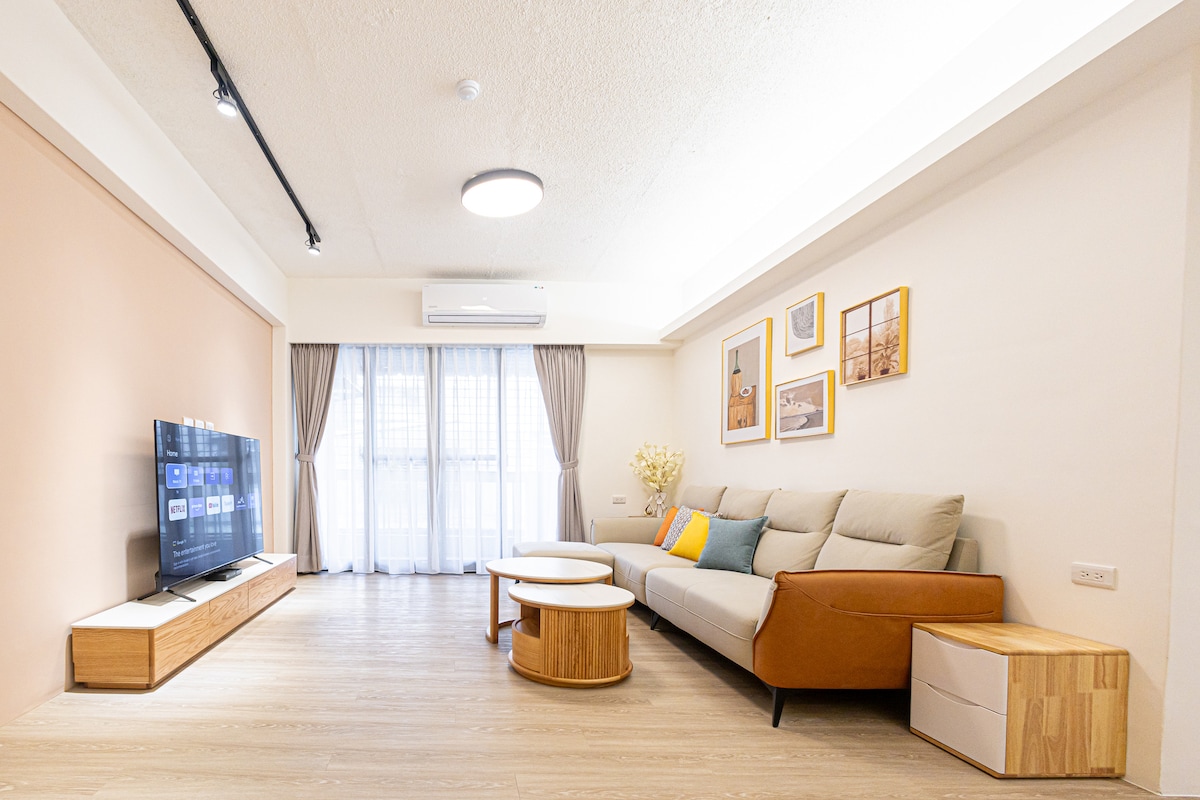 房源位在便利但鬧中取靜的中崙商圈,距離南京復興站步行6分鐘、忠孝復興9分鐘。鄰近遼寧夜市,步行3分鐘可達林東芳牛肉麵、蘭芳麵食館、阿圖麻油雞等精彩美食,是您商旅出差、認識台灣飲食文化的最佳選擇! 如果想要來點文化行程,自行車5分鐘可達忠泰美術館,15分鐘內可到永康街、青田街探索過去人文風華,或到華山、松山文創園區體驗新潮流行文化;如果您喜歡運動,走路5分鐘松山運動中心50M深水泳池、健身中心、各式球場應有盡有。 房間設計採用日系無印風,讓你有回到家的溫暖。室內空間方正寬敞、格局兩房一廳,挑高3米,開闊的窗戶讓房間明亮舒適;優選氣密隔音窗,一夜好眠不煩惱。如果你喜歡烹飪,可以步行3分鐘到全聯、大潤發購買新鮮食材,使用房內冰箱、電磁爐、基本廚具等調理簡易輕鬆的餐點享用。若你有辦公需求,房內有舒適的辦公桌椅和300M 高速網路,讓你開會、趕報告也能輕鬆自在。附近有聯通、嘟嘟房、TIMES停車場方便停車。 浴室設計採乾濕分離,且備有三合一暖風機,讓浴室隨時保持乾燥。備有洗脫烘洗衣機及洗衣用品,方便你輕鬆換洗衣物,雨季也不怕衣服不會乾!長天數的旅行住宿也不用帶很多衣服!