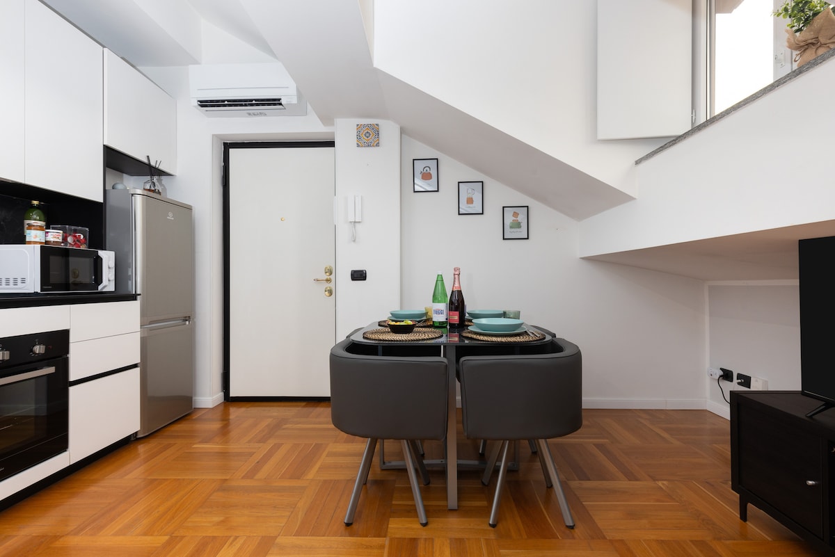 Ef þú gistir í þessari litlu loftíbúð í hjarta NoLo gerir dvöl þína í Mílanó svo sannarlega ánægjulega! Uppbyggingin í húsinu mínu er sérstök með mikilli lofthæð og áberandi viðarbjálkum, björtum rýmum og yndislegum lifandi svölum sem eru tilvaldar fyrir morgunverð til að njóta í kyrrðinni sem aðeins sumir húsgarðar í Mílanó geta boðið upp á. Eldhúsið á eyjunni er hjarta hússins en svefnherbergið á háaloftinu er rómantísk gersemi sem þú mátt ekki missa af!