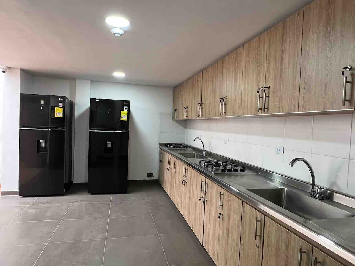 Looking for comfort, technology, and a prime location? Perfect for large groups, business trips, or leisure. What do we offer? • Entire rental (minimum 7 people) or a room (ideal for up to 14 people) • Gaming computer • High-speed internet - Fully equipped kitchen - Comfortable and functional coworking space for work/study - Warm and modern shared spaces - Strategic location near El Campin Stadium, Movistar Arena, and Zona G/Zona T