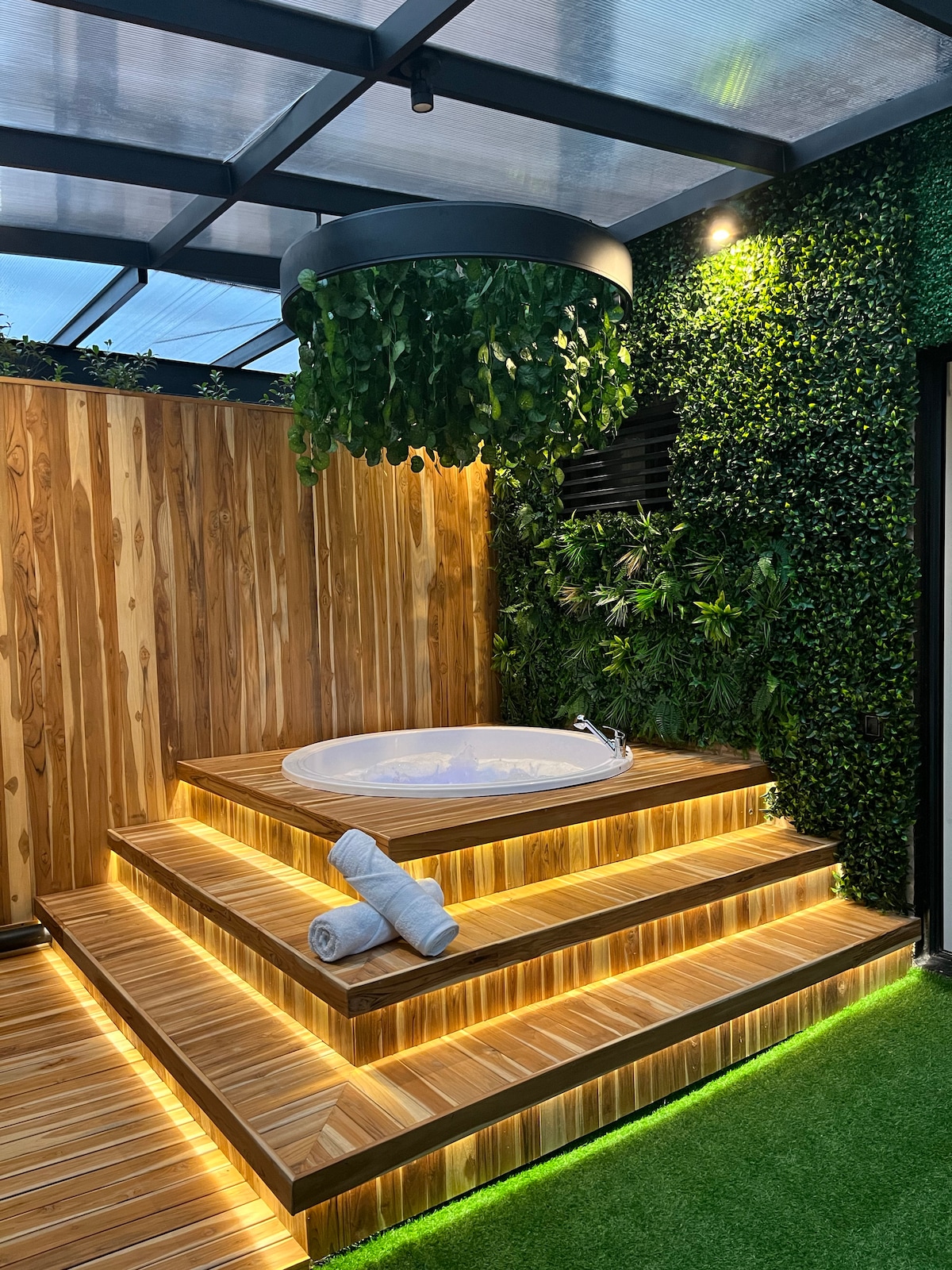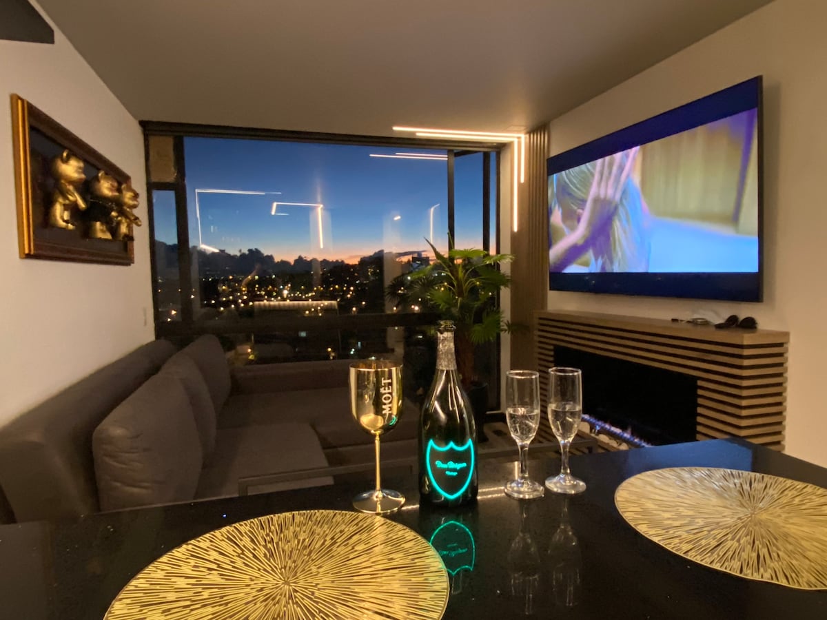 Live Bogota in this Luxury, new hotel-style ! This 2 Bedroom+ 2 Bathrooms+1 sofaBed+ private Jacuzzi Spa with 65” tv in the spa + epson laser projector CINEMA! centrally located in the prime area Chico , short walk from restaurants and shops. Located within 1 mile to park 93, this 5*Hotel-Style Suite brings you to live Bogota the right way, work or play, decoration a unique design luxury apartment, great vibe with a 190sqft private terrace! Just for you! Fiber Wi-Fi and 1 parking are included.