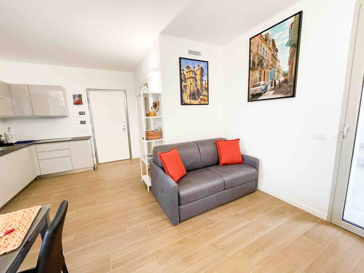 Amazing brand new two room upper scale with Gym condo. 3rd floor at only 50 mt from the redline "Gambara stop" underground. Only 8 stops to the Duomo/City center. Underfloor heating and air conditioning at your control for maximum comfort. Apartment is made up of one living room with pull-out couch, open kitchen and dining table. Storage corner with washer/dryer machine, one bedroom with large wardrobe and 2 wonderful large terraces.
