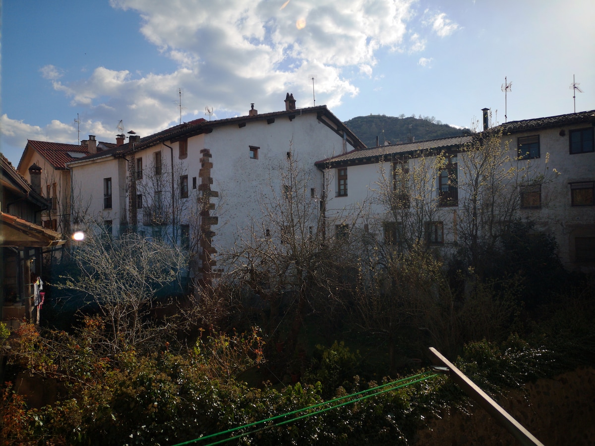 Íbúð á jarðhæð er 90 m2 með opnu dagsrými og tveimur rúmgóðum svefnherbergjum. Nýuppgerð. Rólegt, bjart, þægilegt og fullbúið. Þetta er gott fyrir pör og fjölskyldur með börn. Það er með útsýni yfir fallegan samfélagsgarð. Þar er einnig einkabílastæði. Húsið er staðsett í hjarta Ezcaray, nokkra metra frá öllum verslunum (apótek, ofn, bankar, Bazaar, slátrari...) en út úr ys og þys, á hálf-pedestrian götu.
