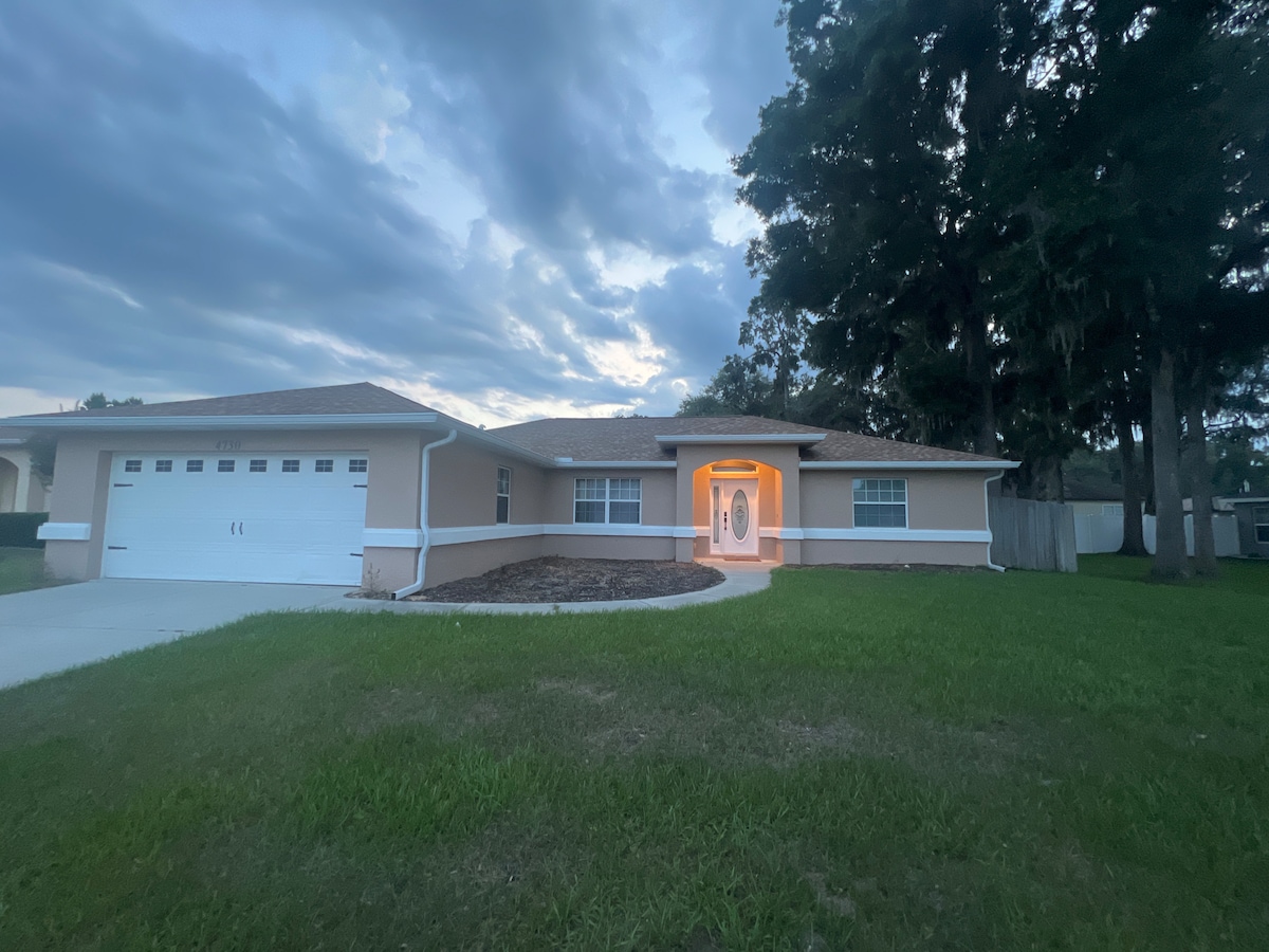 Þú hefur fundið hinn fullkomna stað til að gista á vegna vinnu eða leiks! Þetta nýuppgerða 2ja svefnherbergja 2ja baðherbergja heimili er með deiliskipulag fyrir næði. Heimilið er í 13,1 km fjarlægð frá World Equestrian Center og er á rúmlega hálfum hektara á rólegu cul-de-sac. Heimilið er búið lyklalausum inngangi til að auðvelda innritun og fullbúið með öllum þægindum sem þarf fyrir afslappaða skammtíma- eða langtímagistingu; sjónvörp í öllum herbergjum, þvottavél/þurrkara í fullri stærð og fullbúnu eldhúsi til að elda máltíðir.