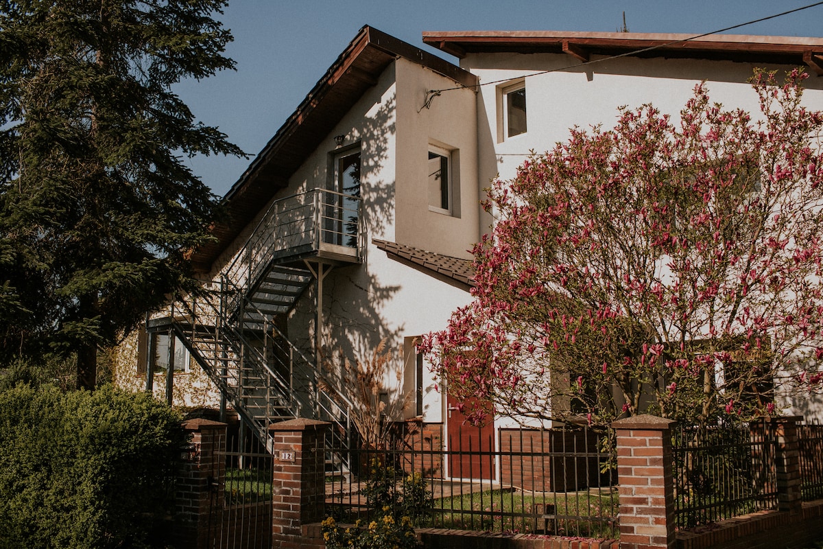 Laus aðskilin íbúð á 2. hæð í húsinu. Húsið er staðsett í miðbæ Sieraków, staðsett á brún Notecka Forest. Jaroszewskie-vatn er staðsett í 3 km fjarlægð frá borginni. Þorpið er staðsett í landi 100 Lakes og Sierakowski Landscape Park, fjölmargar hjólaleiðir, góður staður fyrir þá sem vilja frið og ró. Ferðatími: Poznań - 1 klukkustund 15 mínútur Szczecin - 2 klukkustundir Wrocław - 2 klukkustundir 45 mínútur Berlín - 3 klukkustundir 15 mínútur